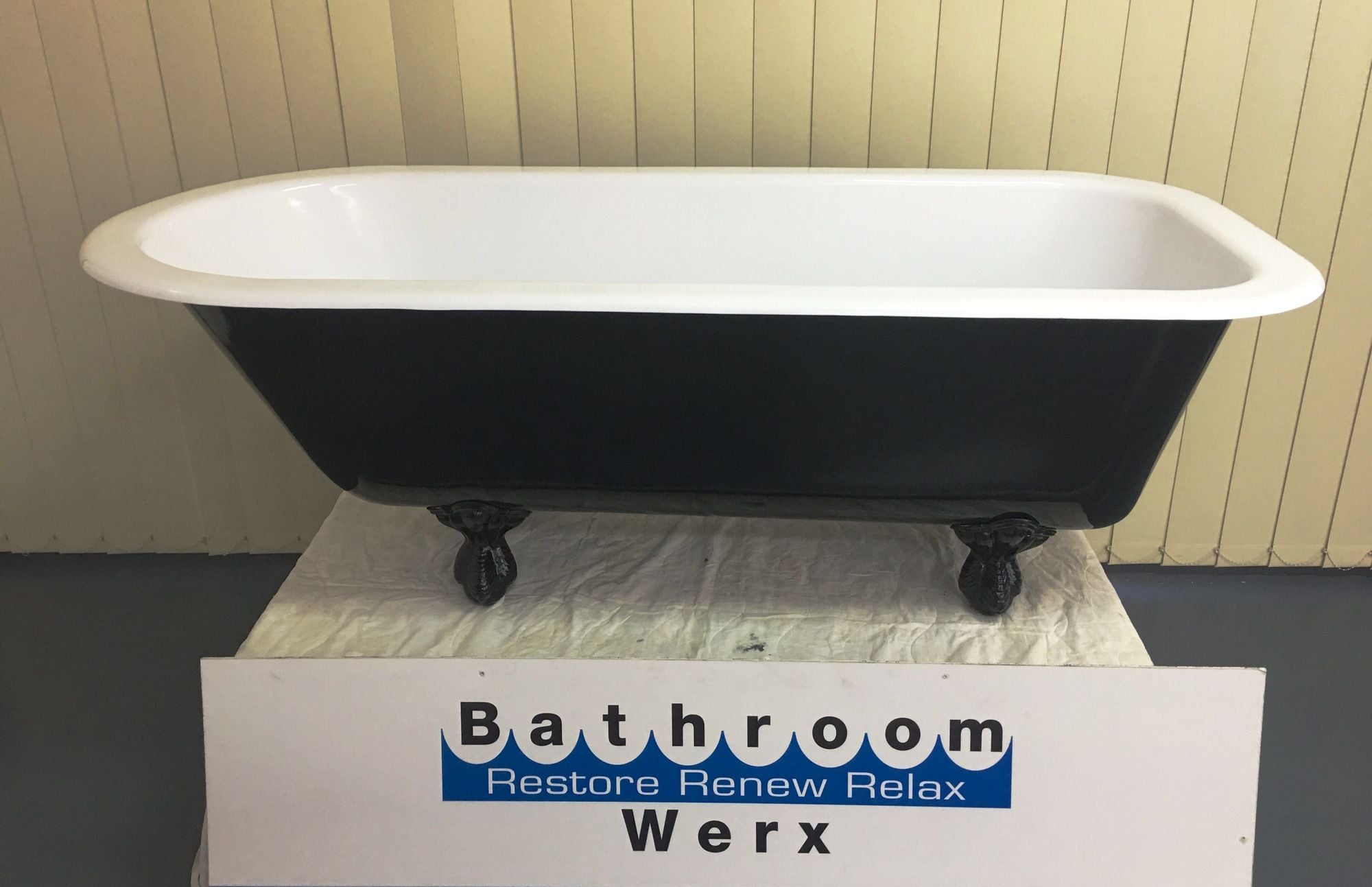 The exterior surface is ground down to bare metal, filled and sanded to achieve a smooth surface and is then coated in a high gloss finish (in the colour of your choice) to create an individual look for your bathroom.